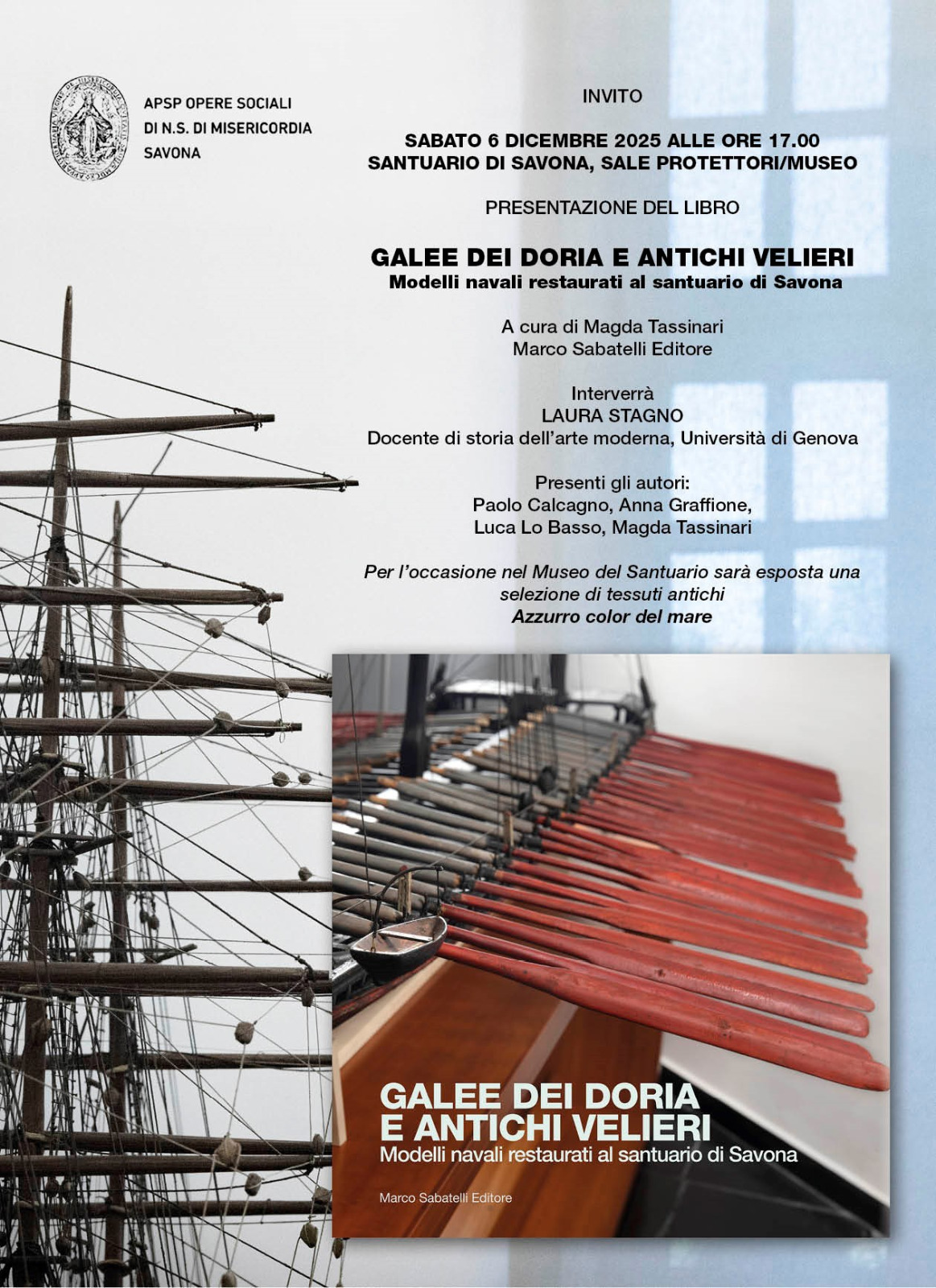 In data 6 dicembre 2025 presentazione del libro Galee e antichi velieri, Modelli navali restaurati al santuario di Savona.